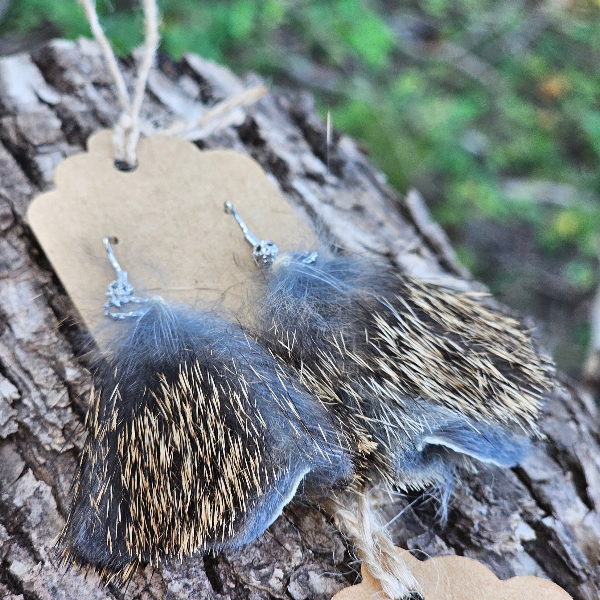 Handmad earrings from real rabbit fur that I collected and prepared myself. The fur is soft and natural, giving each pair a cozy woodland look. attached the fur to silver hooks, keeping the design simple so the texture of the fur can really stand out. Each pair is handmade and unique since . These earrings are light to wear ana make special gift for anyone who loves natural, rustic, or one-of-a-kind jewelry.